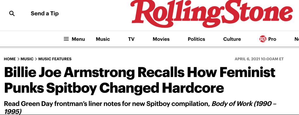 Spitboy, Adrienne Droogas Stone, Dominique Davison, Karin Gembus, Michelle (Todd) Gonzales, and Paula Hibbs-Rines, were active 1990-1996, and though not a riot grrrl band, Spitboy blazed trails for feminist musicians world wide touring the US, Europe, New Zealand, Australia, and Japan. All proceeds from plays and downloads of Spitboy’s music benefits the National Women’s Law Center.